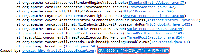 ORA-00904의 경우 '부적합한 식별자' (invalid identifier) 라는 에러 사유가 출력 되며,
